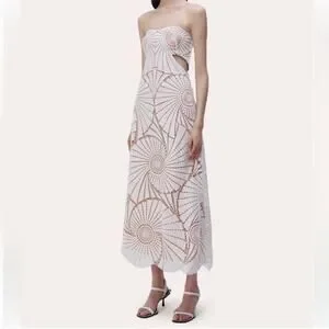 Keywords: bride bridal bride era bridal shower honeymoon bachelorette white party date night special occasion special event party prom homecoming hoco garden party daytime event charity event cocktail evening wear long strapless sleeveless formal debutante boho bohemian hippie hippy beach beachy vacay destination wedding nautical shell print birthday dress vacation tropical maxi dress midi dress white dress lwd lace illusion ZZ96LIO