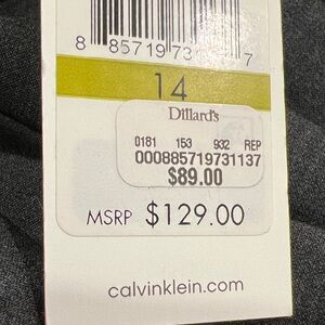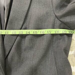 Elegant dark gray blazer by Calvin Klein. Perfect for professional and casual settings. Features a single-button front and classic notched lapels.
