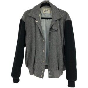 Retro Action Athleticwear Dual Tone Grey & Black Wool Bomber Jacket XL
