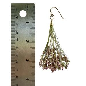 Pair of 2 real flower dangling earrings preserved in resin. 14k gold plated .925 sterling silver hardware. Never worn, comes in original box. Price is for both earrings!