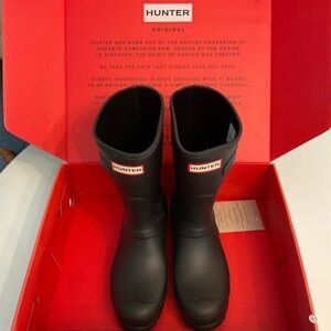 Women’s original short black waterproof boots by Hunter. Ideal for rainy days. Durable and stylish. Worn only a few times. VGUC