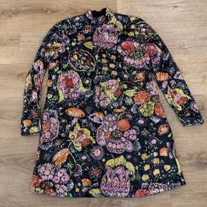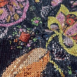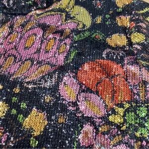 Stunning La DoubleJ shift mini dress with mock neck multicolor sequins with pockets! Perfect party dress for a night out. Shimmering sequins make the floral pattern on this shift mini dress stand out in a crowd.