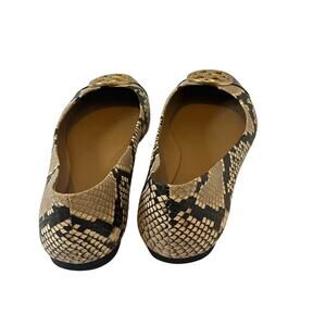 Tory Burch Chelsea Snake Printed Leather Cap Toe Ballet Flats Size 9.5