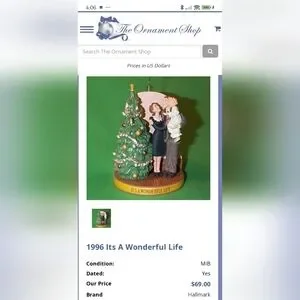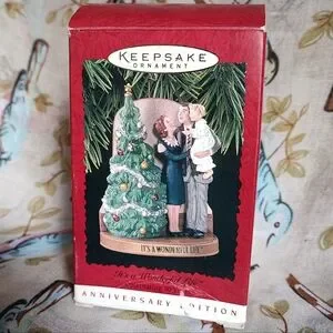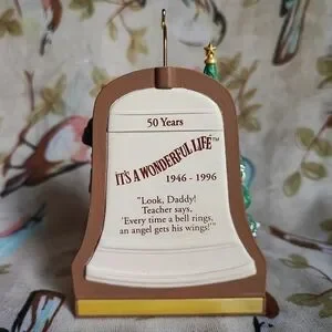 This listing is for a vintage Hallmark ornament from 1995-1996. It is new, in the box from my personal collection. It is from the classic movie, "It's a Wonderful Life", starring Donna Reed and Jimmy Stewart in. It measures approximately 5" tall, including the loop for a hanger, by 3" across. There is a bell on the base that rings, but the ornament has to be shaken to hear it. The original price was $14.95. It is a retired ornament. I found it online at 'The Ornament Shop', as shown in the last photo. I have lots of Christmas items listed in my closet, take a peek. Buy with confidence, careful packaging promised. I love to bundle.