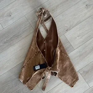NWT Lioness Halter Hills top in color “stone wash”. Size XS. Stylish brown halter vest with button closure. Features two front pockets.