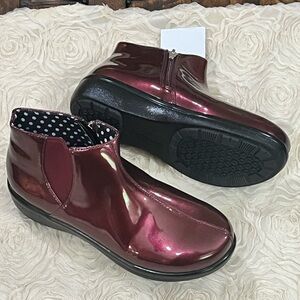 rainboot, but you'll enjoy the slick style of the Climatease rainboot by Alegria even more! This classy little ankle boot features a slip-resistant outsole with a 1-inch platform heel, a man-made upper that repels water, and an inside zipper to help you with easy on-and-off wear. This solid black rainboot also has the signature Alegria removable and replaceable footbed constructed of polyurethane, cork and memory foam for excellent arch support and a custom fit. Try out the Climatease boot today to keep your foot comfy and dry!