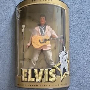 Elvis Presley collectible figure in a pink jacket with a guitar. Perfect for fans and collectors.