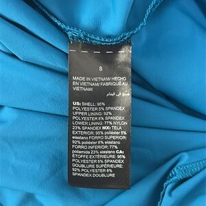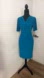 Chic teal midi dress with wrap design. Perfect for versatile styling.