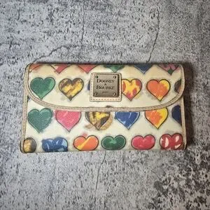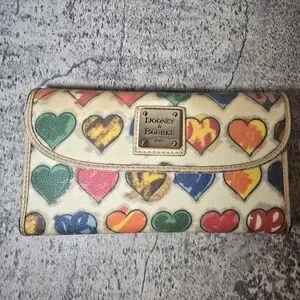 Charming wallet with a playful heart pattern. Features a variety of vibrant colors. Perfect for adding a pop of color.