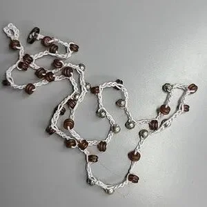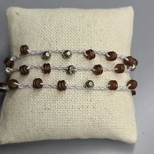 One of a kind double wrap bracelet with button closure. Great lightweight piece to wear layered with other accessories. Makes a great gift. Unisex. 20 in. long
