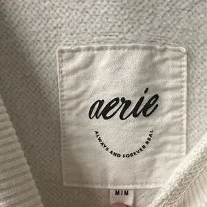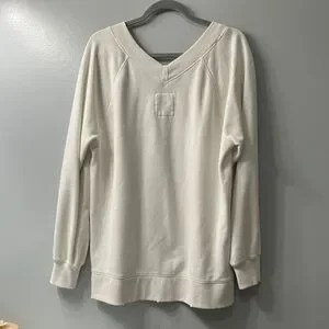 Cozy cream V-neck sweatshirt in front and back. Soft fabric. Relaxed fit. Laundered but never worn.