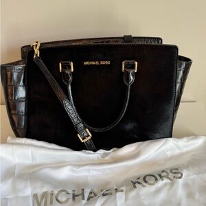 Michael Kors Black Satchel Bag embossed croc calf hair