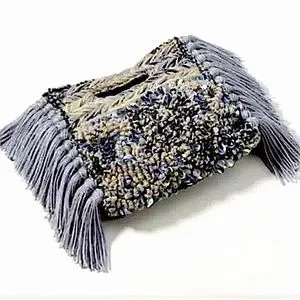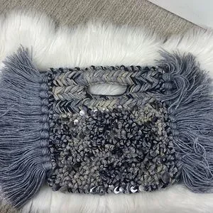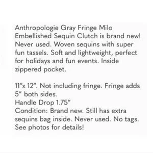 🆕 Anthropologie Milo Clutch Gray Fringe Embellished Sequin Bag New