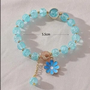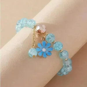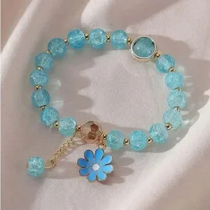 ⚠️Clearance Blue And Gold Flower Charm Beaded Bracelet SS