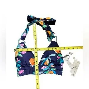 SUNSHINE 79 navy floral banded peaches halter style bikini swim top size 6 NWT