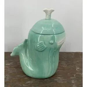 Port Phillip Shore Line Teal Whale Ceramic Cookie Jar Salt Water Marine Mammals