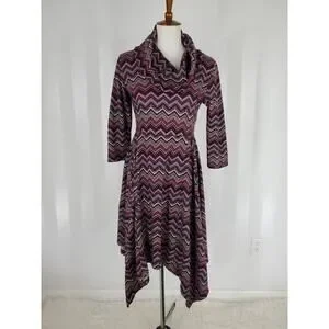 COREY P Women's Multicolor Cowl Neck Handkerchief Hemline Sweater Dress Sz S