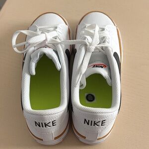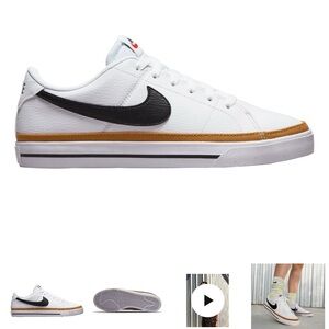 Nike sneakers with a white base and black swoosh. Gold accents add a stylish touch. Ideal for casual outings. Brand new! Never worn!! Do not have the original box.