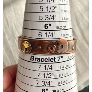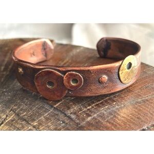 Artisan Recycled Copper & Brass Cuff Bracelet w/ Modernist Disk/Circle Design