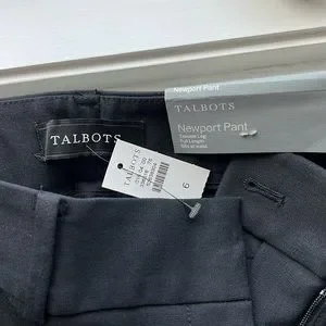 Talbots Newport Black pant size 6 trouser leg full length sits at waist NWT