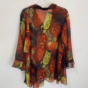Beverly Drive Orange Neon Green Snake Print Chiffon Tunic