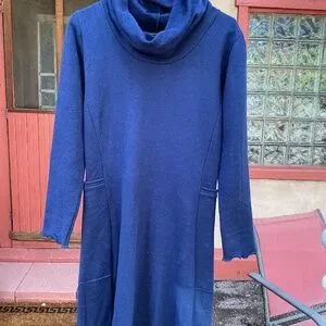 Rowan Grey Hemp Denver Passport Pocket Cowl Neck Dress Small Navy NWOT