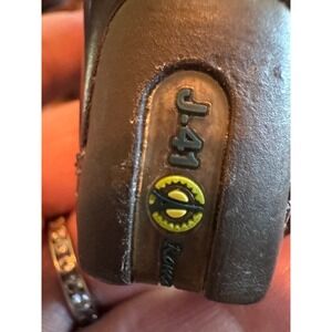 Keywords: J 41, KANEKA, Mary Jane heels, brown suede shoes, womens heels, retro heels, vintage style, adjustable strap, comfortable heels, size 8.5M, dress shoes, work shoes, casual heels, eiffel tower sole, brown and black shoes