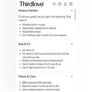 Comfortable Kinetic everyday / sports bra by ThirdLove with sewn in foam cups and adjustable straps. Blue Granite color, size 40C.