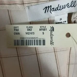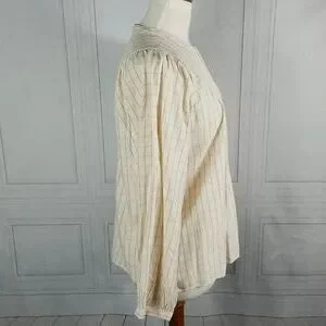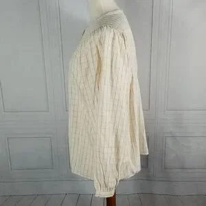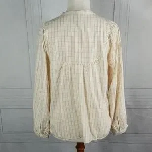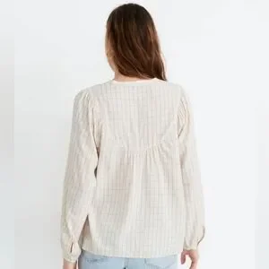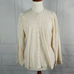 Madewell Balloon Sleeve Top. Windowpane design. Peasant style button front shirt, shirred yoke. Size S. 100% viscose. NWT.