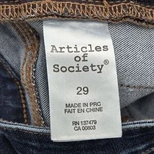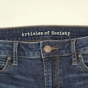 Unique and eye-catching—the Sarah skinny jeans by Articles of Society with embroidered butterfly patches along the legs and a cool raw-cut hem. Stretchy blue denim offers comfort and style.