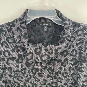 Ming Wang Women Animal Leopard Print Cardigan Jacket Size 0X Blue Black Collar