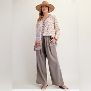 Elevate your style with these chic wide leg taupe pants. Perfect for any occasion, these pants offer comfort and elegance.