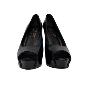 Donald J. Pliner Peep Toe Patent Leather Platform Pump Sandals Black 7