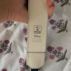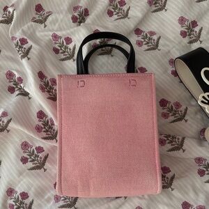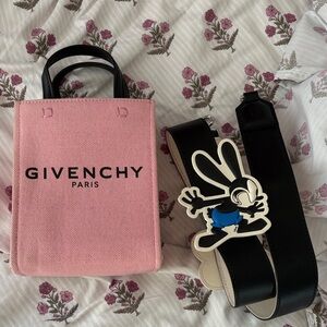 Chic Givenchy tote in pink canvas. Features bold black logo and accents. Stylish and versatile. Disney edition.