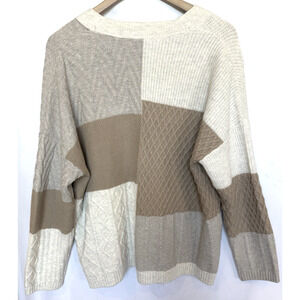 J Jill Womens Patchwork Cable Knit Cardigan Sweater Size XL Fisherman Preppy Colorblock Academia