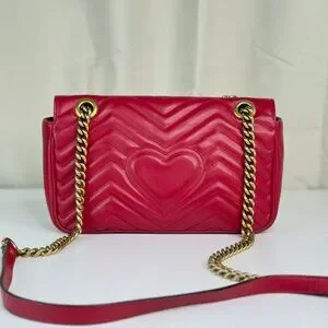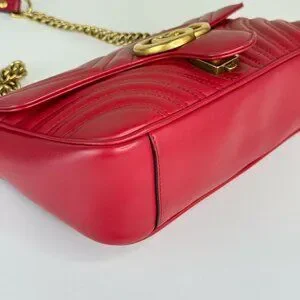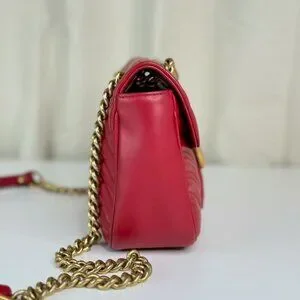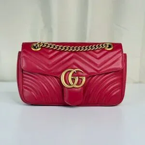 Gucci GG Red Medium Marmont Shoulder Bag Crossbody with Gold Chain Strap