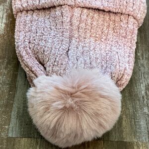 Stay cozy and chic with this blush knit beanie, featuring a playful pom-pom on top. Perfect for adding a touch of warmth and style to your outfit.