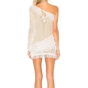 Chic one-shoulder design with fringe details. Perfect for a stylish outing.