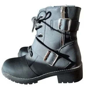 My Style Combat Ankle Boots Lace up Front with zip up side