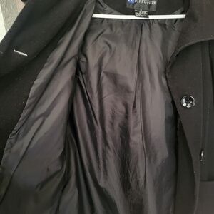 Stay warm and stylish with the Women's Black Coat. Perfect for any occasion, this coat offers a sleek and elegant look. 32 inches long and has a hood.
