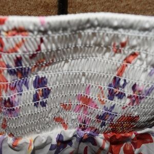 Measurements: adjustable straps length 24', underarm to underarm across flat 20' (stretches)