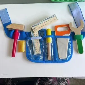 Encourage imaginative play with this vibrant kids' wooden tool belt set. Featuring a blue belt with multicolor tools, it's perfect for little builders. Durable and safe for endless fun.