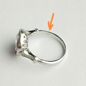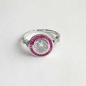 Art Deco White Sapphire and Ruby Ring in Sterling Silver engagement size 6