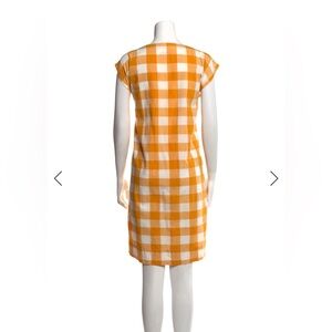 Chic mini dress with vibrant orange and white plaid. Perfect for casual outings.