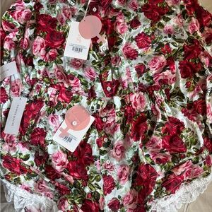 The oversized blouse features a neat back pleat, wide cuffs, and a front patch pocket with gleaming hardware. Paired with matching boyfriend boxers adorned with pleating, lace trim, and ribbon drawstrings, this set turns every sleepover into a night of rom-com marathons and heart-to-heart talks over boxes of chocolate truffles.