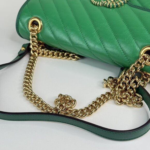 Gucci Green Medium Marmont Shoulder Bag Crossbody with Gold Chain Strap