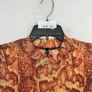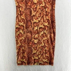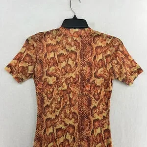 Urban Outfitters Dress Women's Sz Small Orange Mesh Snakeskin Mock Neck Bodycon