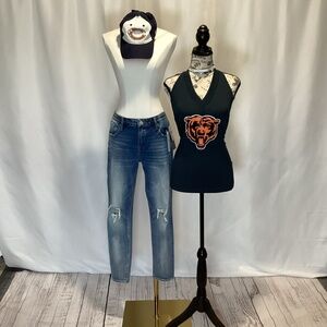 Subtle distressing adds a touch of edge, while the skinny leg cut keeps your look streamlined and modern. Brand new with tags, and ready to become your new go-to pair!