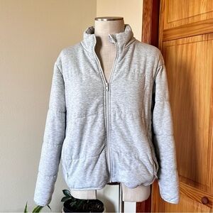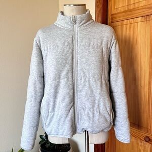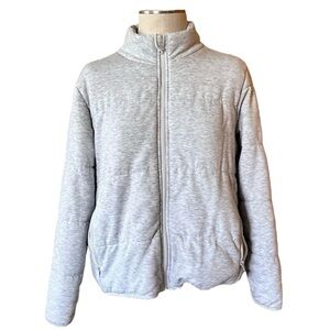 Three Dots Large Gray Thick Quilted Jacket Minimalist Neutral Cozy
