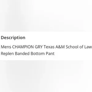 ✔️ New with tags. CHAMPION brand Texas A&M University School of Law grey banded bottom sweatpants.